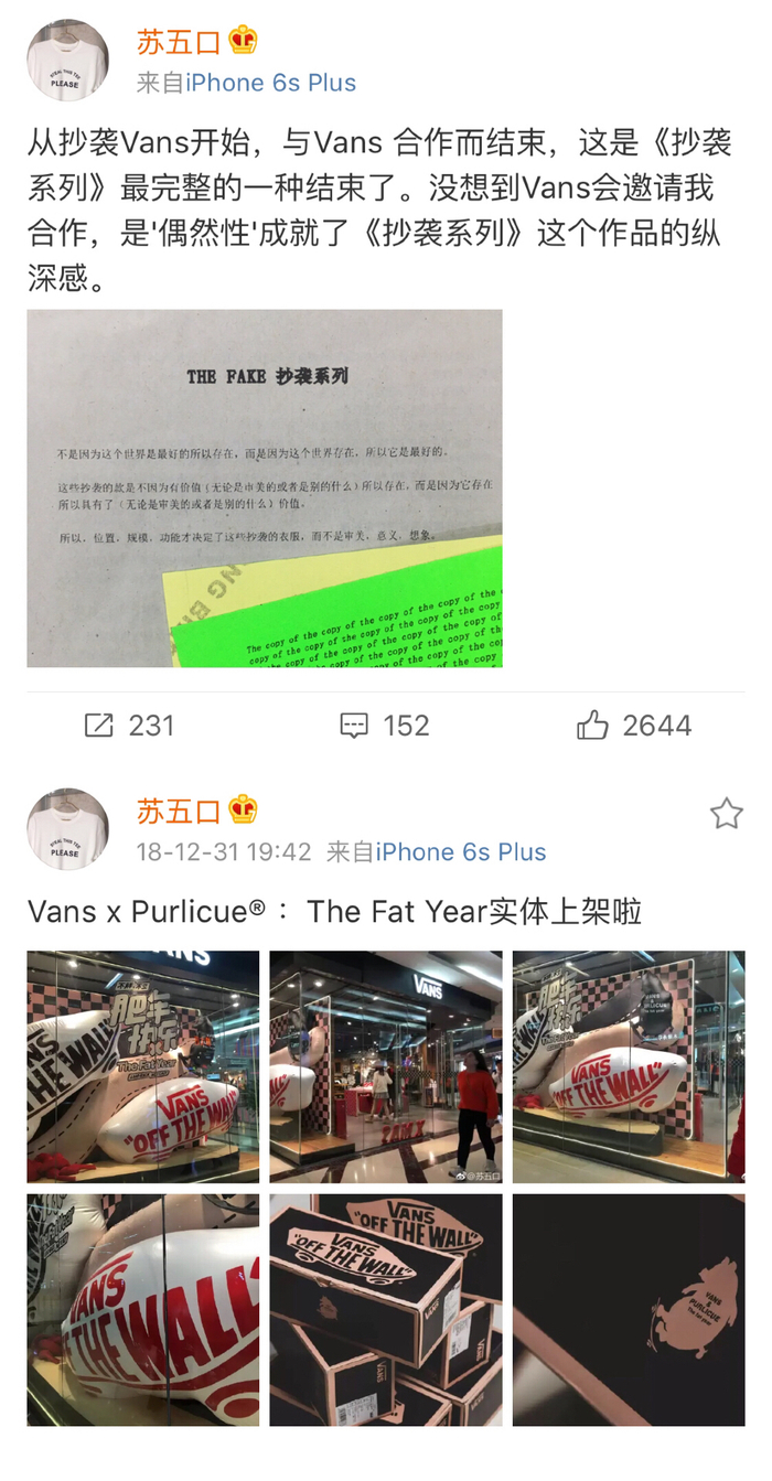 而“抄袭”的结果是,引来Vans与自己的合作系列:The Fat Year。