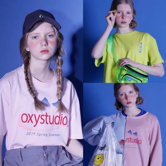 OXY=Original X Youth,表明了品牌原创和年轻的潮流态度。OXY更是取自英文单词Oxygen(氧气),意欲成为时尚浪潮里清新鲜活的氧气。今年,OXY studio推出了“依云水”的主题,品牌Logo被融入了依云标志,“背靠”阿尔卑斯山。