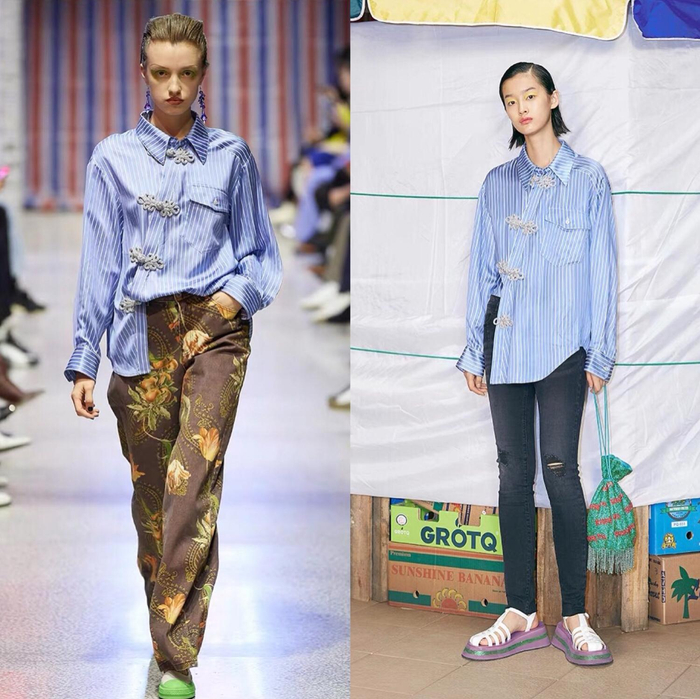 唐人街系列的设计源于熙熙攘攘的街道,在高楼大厦中间,有着奇妙的冲突感。时髦的中性条纹衬衫加入了盘扣,来了一场复古与未来的结合。
