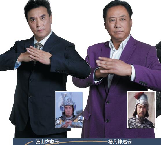 张山说:“我特别崇拜赵云,演的时候没那么多压力,就想把赵云的品性传给全国观众,什么叫忠义,怎么冲、怎么拼命。”张山表示自己特别羡慕现在的特效技术,“我们那个时候再危险的动作戏,都自己上,如果有现在的技术,那我们一定拍疯了。以前没有替身,我们都是自己骑马自己转,摄影师爬到树上拍摄。我经常想如果有现在的技术,我一定能拍得更精彩,能吓死他们呢。(大笑)”杨凡从小喜欢武术。一听有人找他演三国,“我高兴坏了,三国里我最喜欢的角色就是赵云。我把小说重新看了两遍,发现应该从‘勇’入手,因为忠产生了大勇,就应该从这个方面开始刻画。中年赵云要粘胡子,酒精一粘再取下来太疼了。但是每个人都很敬业,都在反复看书,揣摩小说。”杨凡特别喜欢重看《三国演义》,每次看他都觉得流年易逝,也充满了感慨,“那个时候的自己风华正茂,过了这么多年了,大家也发生了很多事,但一看当年还是觉得心潮澎湃。”