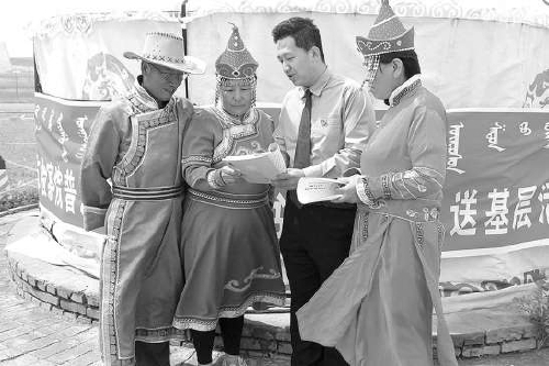 检察官将《蒙汉对照刑事法律词典》送到基层群众手中