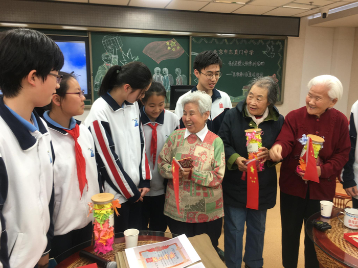 “那个年代离我们实在太远了。因此,我们把三位老人请到学校,聆听他们讲述祖国70年来的变化。”东直门中学校长薛丽霞说,今天的活动也是三所学校组织学英模人物寻访系列活动之一,希望通过一系列活动,为国家建设和民族复兴培养人才。