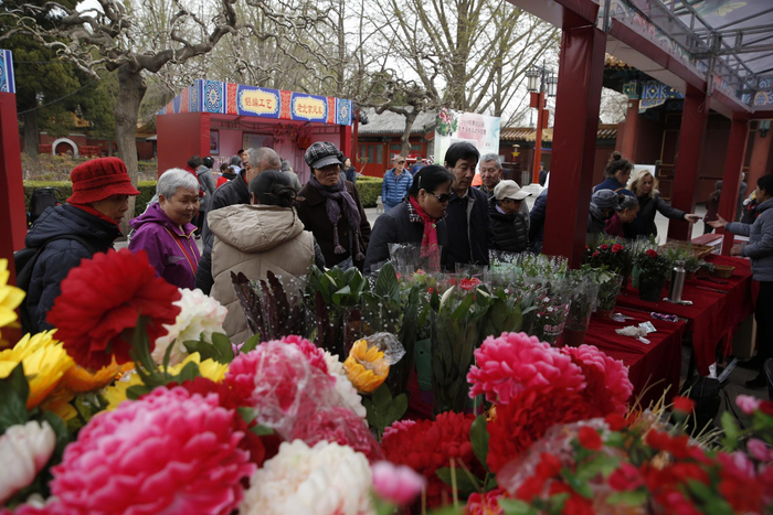 活动期间,公园还在东门内广场区域设置文创展卖区,售卖包括市属公园春季文化活动文创商品联展、公园“一园一品”牡丹、“木海观鱼”主题等文创商品,并设有北京非物质文化遗产展位,游客可以买到如老北京兔爷、剪纸、糖人、风筝、草编、毛猴等传统手工艺品。