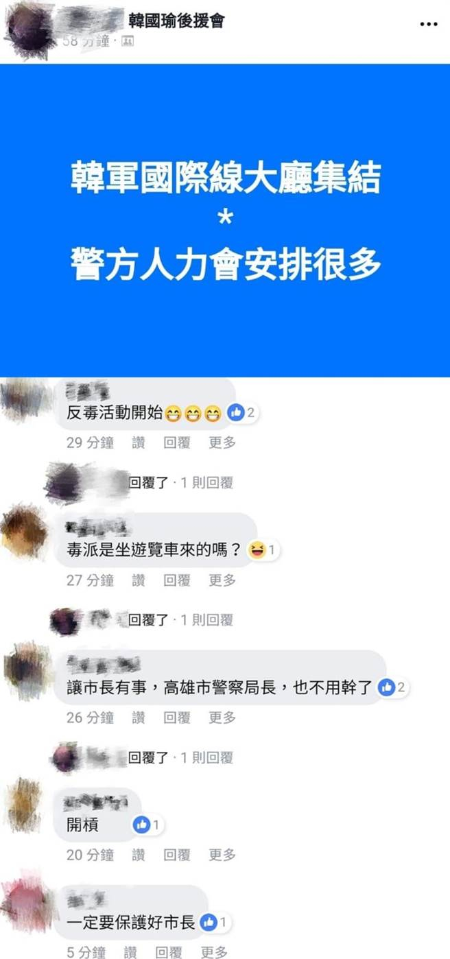 当时就有网友闻讯回应:“台独比梅毒可怕”、“务必保护好韩市长”、“反独活动开始”。也有人直言:“毒派是坐游览车来的吗?”↓