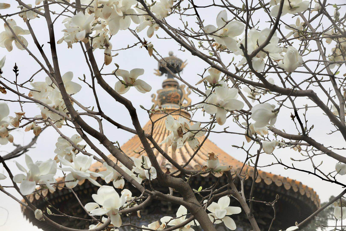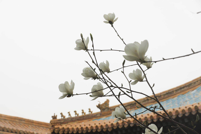 3月,玉兰总是早早就开放。御花园自不用说,西南角的玉兰盛开时,春天仿佛就到了,预示着百花将近。