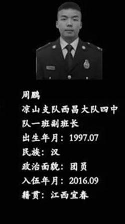 牺牲消防员周鹏,1997年7月出生,来自江西宜春,今年22周岁。