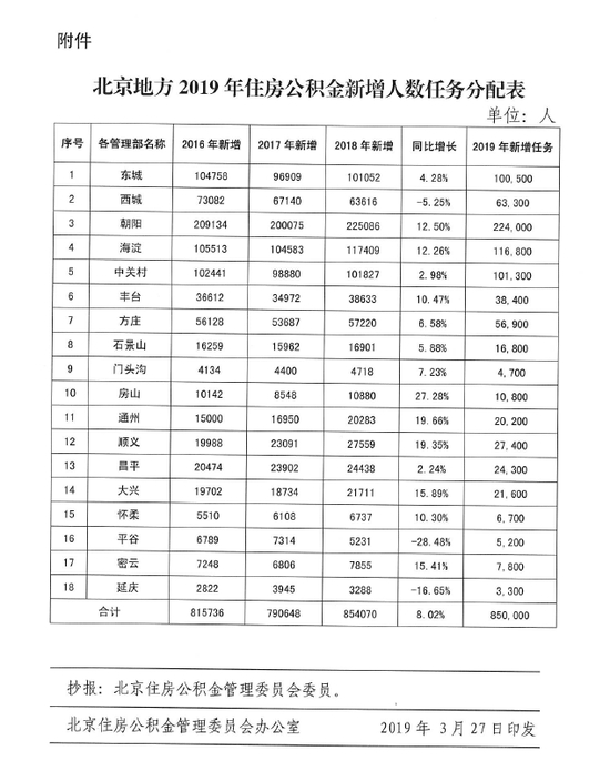 住房公积金新增开户人数88万人。其中,北京地方85万人,中直分中心4000人,国管分中心3万人。北京地方各管理部应完成的新增归集人数见附件。