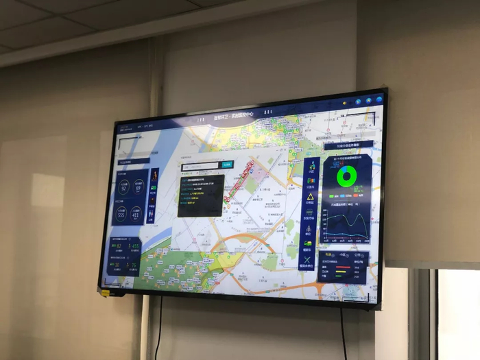 在“智慧环卫”综合调度监控指挥中心,有一块电子显示屏。在显示屏上,精确地显示着所有建环公司工作人员的所在位置。工作人员表示,除了街面负责保洁的环卫工配发智能手环之外,公司所有管理人员的手机里都有一个“智慧环卫”的软件,他们在哪里呆了多久,从哪里来到哪里去,系统后台都可看到。对于隐私问题,工作人员表示,智慧环卫系统每天对环卫工人的定位只局限于上班期间,下了班后,他们就不会再进行操作。