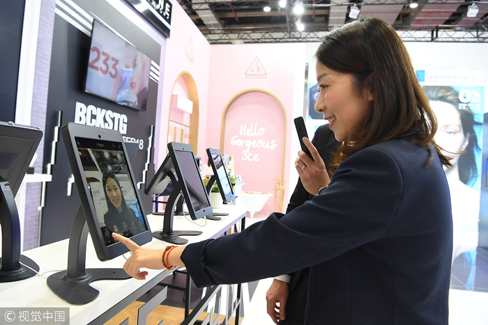 在智能美妆领域,化妆品巨头欧莱雅的探索脚步也从未停止。去年11月,在首届中国国际进口博览会上,欧莱雅作为参展规模最大的日化企业,就展出了高科技AR美妆工具ModiFace和智能化妆机器人。