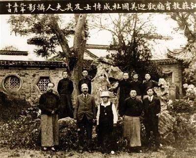 1920年5月10日,江苏省教育厅欢迎杜威夫妇(前排中立者)。