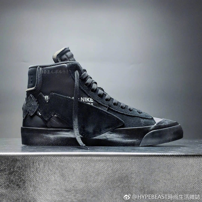 而球鞋设计师Edmondlooi把这个“暗黑皮卡丘”的“生命”延续到了球鞋上,他通过十种材质的堆叠,带来了定制版Off-White™ x Nike Blazer运动鞋。皮卡丘的“闪电”尾巴置于鞋根部,中底和鞋帮则分别附有Fragment Design的Logo以及“十万伏特”字眼。