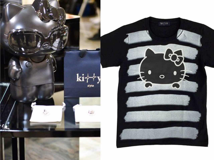 像皮卡丘一样,Hello Kitty也走过很多反差路线,“暗黑”起来也很惊艳。2015年,首家Kitty's门店亮相日本东京新宿的伊势百货,这个全新品牌由时尚教父山本耀司联手Hello Kitty共同推出。包括T恤、玩偶都以山本耀司的经典黑白配色为主打,为Hello Kitty在可爱的粉色之外开拓出一个冷酷的黑白世界。