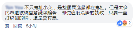 也有网友直言,不只“鬼扯小英”,整个民进党都在鬼扯,太多民众被“统独”意识蒙骗↓