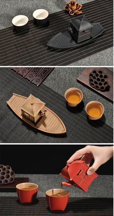 茶壶像一顶“轿子”,茶杯就是百姓挑着的“箩筐”,而底部的茶盘就是一条小船。区别于常规的茶具,这一套故宫文创产品更好地表达了生活美学,给生活添加了一点惊喜。