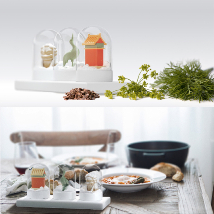 据了解,这组调味罐一套有三个,分别是宫墙、石狮和铜鹤造型,只要放入食盐或白糖,就可以呈现雪落琉璃瓦、雪盖石狮、铜鹤的场景。