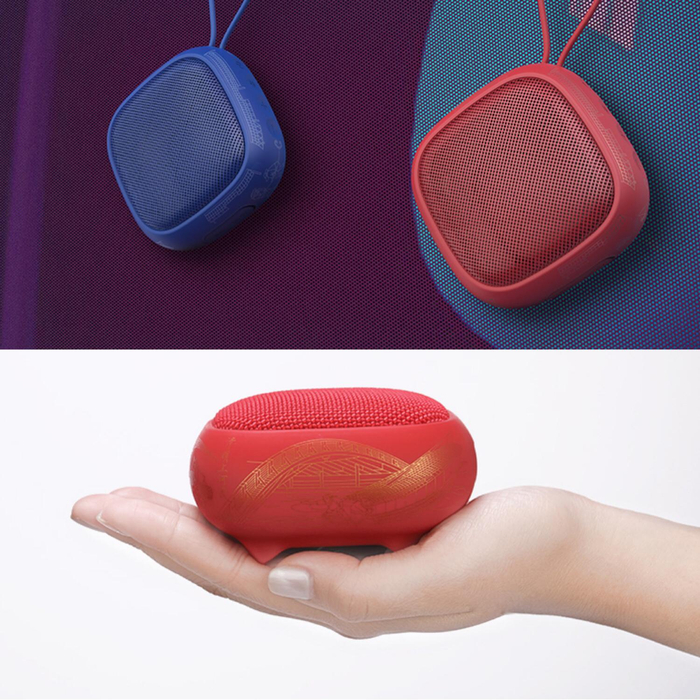 此款音响有红色和蓝色两种颜色可供选择,娇小可爱,可以随身佩戴。