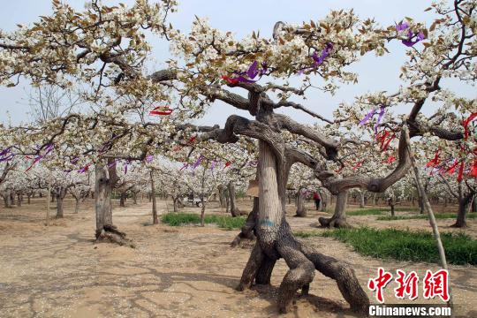 中新网保定4月8日电 (吕子豪 徐巧明)8日,河北省保定市博野县第六届梨花节开幕。万亩古梨园内,名为“千年一恋”“夫妻树”的古梨树因造型独特成“网红”,游客纷纷拍照发朋友圈打卡。