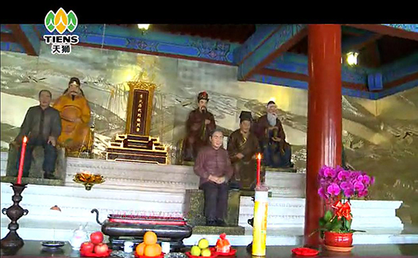 上述宣传资料称,华堂中的崇孝堂正殿内供奉着李氏光祖的雕像,每尊雕像均由整颗金丝楠木雕成。在视频网站优酷上,一则21分钟长,名为《天狮产业园2013年》的视频展现华堂内部疑似建有一座“祠堂”。视频显示,处于华堂西北角的崇孝堂门口竖立着题有“盛于李唐”四字的牌坊,大门处悬挂着“光祖门”牌匾,内部供奉着“李氏历代列祖列宗”牌位与若干座雕像。对此,张强向澎湃新闻记者确认称,李金元确实在华堂中设立了家族祠堂。从视频内容来看,牌位左侧雕像形象与《唐太宗画像立轴》中的李世民形象相似。