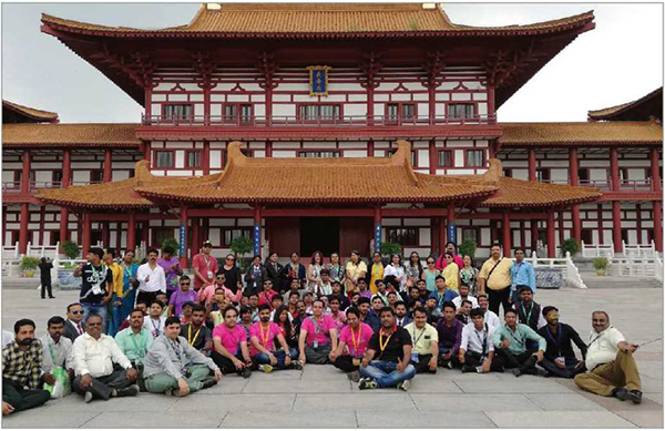 华堂还接待过世界各地的天狮经销商。2013年,天狮集团举办成立18周年庆典,其中一个环节即是在华堂长寿殿门口的广场上举办“全球经销商至尊晚宴”。澎湃新闻记者在博客网站、视频网站找到多名天狮经销商在华堂拍摄的纪念照片、视频,其中不乏外国面孔。在2018年9、10月刊的《TIENS TIMES(天狮时报)》中刊载了一批印度经销商在华堂长寿殿门口的合影。在介绍中,这是一份由天狮的印度分公司(Tianjin Tianshi India Pvt.Ltd.)面向天狮在印度的直销员所创办的刊物。