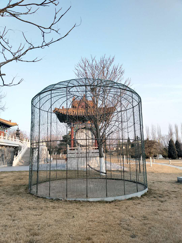 人工湖周边饲养着约15只黑、白天鹅,在园林一隅建有两间鸟舍。北部三栋建筑中,正北位置的一栋挂有“老君殿”的牌匾,周遭有曲径、回廊、小亭等园林景象。