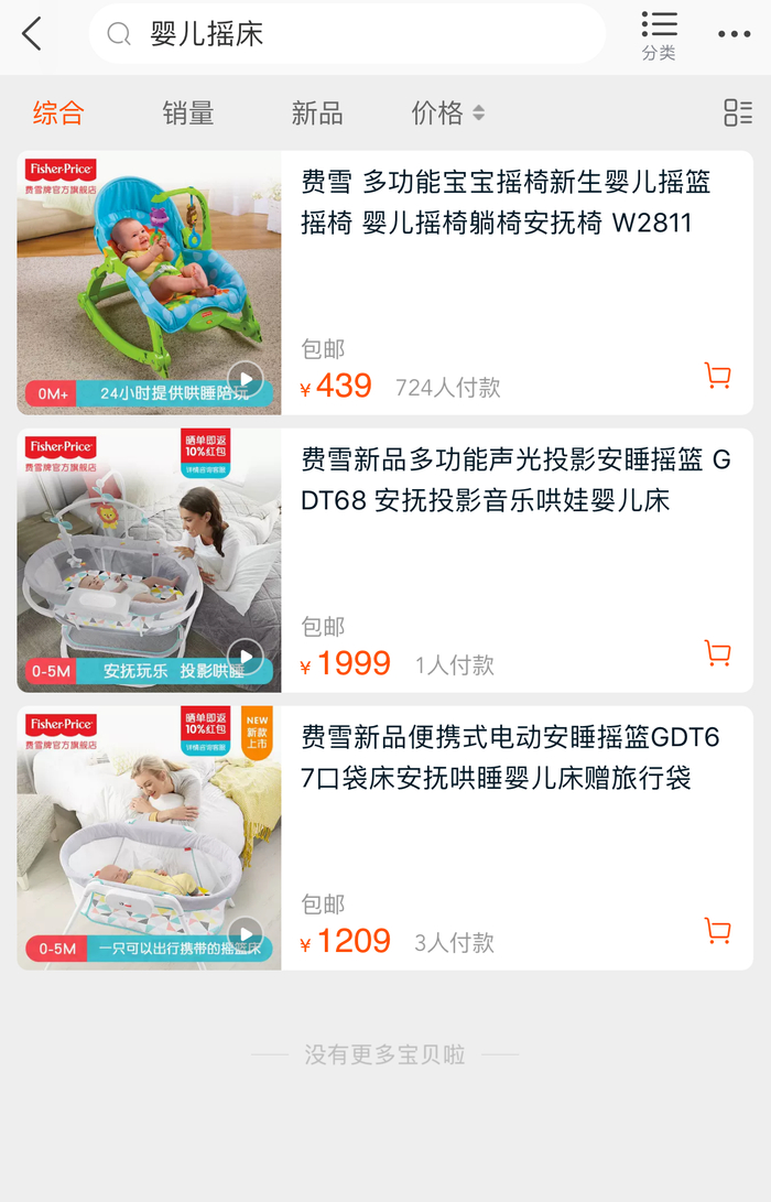 在国内,不少电商平台也在出售“费雪”的产品,新京报记者在“费雪牌官方旗舰店”中搜索“婴儿摇床”并未发现该款产品。