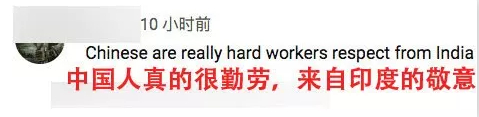 “中国人真的很勤劳,来自印度的敬意。”