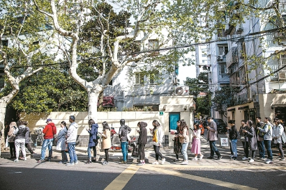 上午9时整,在位于安福路288号的上海话剧艺术中心,《良辰美景》等十部话剧准时开票,购票单限量800号。半价开票日活动自消息公布以来,受到数万人的关注。排在队伍最前的观众前一晚22时赶到话剧大厦。主办方特意在大堂准备座椅,让观众可以在室内排队、休息。上话还联手安福路周边七家商铺,为购票观众准备了一系列好玩又有趣的“春日友邻会”探店体验活动,让大家在购票之余可以玩转安福路网红小店,从老相机制造博物馆、塞万提斯图书馆到画廊、花廊都迎来络绎不绝的观众。
