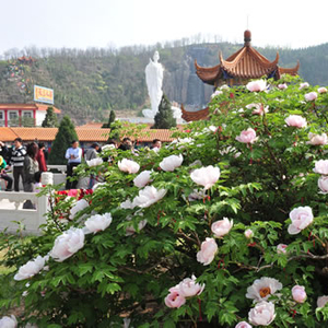 古县位于山西省临汾市东北部太岳山南麓,这里山川秀美,旅游资源丰富,除了被誉为“天下第一牡丹”的三合牡丹,还有树龄已逾千年的四大树王、活水龙吟延庆观、战国名相蔺相如墓、隋唐时期罗城将军阵亡之地淤泥河等景观。古县牡丹景区为国家AAAA级旅游景区,位于古县东南部石壁河流域,总面积54平方公里,有明代民居张家大院、清代古迹关帝庙、遍山红叶仕女峰等20余处景点,景区内共栽植各类牡丹66个品种2000余亩460余万株。主景区位于石壁乡三合村,在牡丹园中有一株野生白牡丹花,高2.3米,冠幅33.2平方米,丛围16米,2007年单株着花621朵,均为全国之最,已被《中国牡丹全书》收录,被中国花卉协会牡丹芍药分会冠为 “中国最大的单株牡丹”。景区南部由牡丹壁、牡丹仙子像、南山飞瀑等景点。景德镇彩色陶瓷浮雕壁画高9米,长62米;牡丹仙子像高39米,由北京房山汉白玉制成,为国内同类雕像之最,二者均已载入上海大世界基尼斯纪录。景区内度假村、农家乐、商品一条街等休闲、娱乐、购物设施一应俱全。景区已成功举办十一届牡丹文化旅游节。