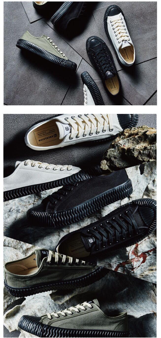 这样的橡胶底不但非常复古,还非常舒适,也不会显得笨重。Excelsior的鞋设计简单素雅,款式也涵盖了高帮、低帮等,还有多种颜色可以选择。