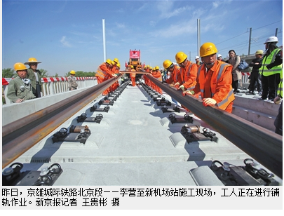 京雄城际北京段铺轨 西站20分钟可达大兴国际机场
