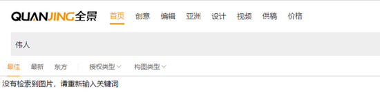 《每日经济新闻》记者获悉,全景网络旗下网站(www.quanjing.com)已可以正常打开,记者通过全景网络网站搜索前国家领导人、国旗、国徽、党旗和部分企业、企业家等图片时,网站均显示“没有检索到图片,请重新搜索关键词”。