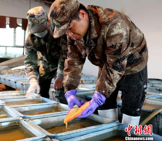 中新网乌鲁木齐4月17日电(戚亚平 谭燕)时下,在新疆生产建设兵团第十师一八八团额河特种鱼繁育中心孵化车间内,工作人员正忙着进行白斑狗鱼的人工繁育工作。