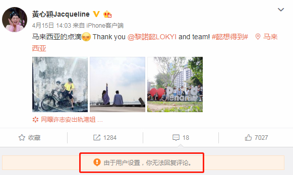 不过,黄心颖已关闭微博账号评论功能↓