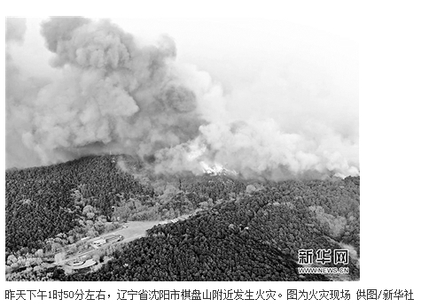 4月17日13时50分左右,沈阳市郊东部的棋盘山附近突发山火。由于当天沈阳风力较强,火势蔓延很快。