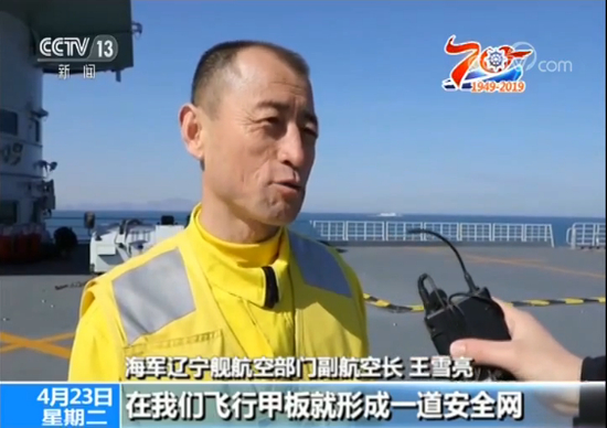 海军辽宁舰航空部门副航空长 王雪亮:我们现在所在的位置,是经过进厂(改造)之后抬升的,原来有这么高的厚度差,这样我们经过抬升以后,我们甲板作业面积更多了,舰载机在我们舰上进行开车、暖机、自检等作业,包括挂弹,这样的话位置更加多了,使我们的保障效率也得到了有力的提升。
