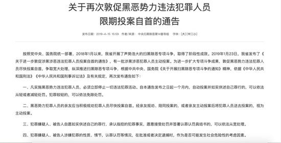 那则通告发布次日,安徽方面又发布了《关于再次敦促黑恶势力违法犯罪人员限期投案自首的通告》: