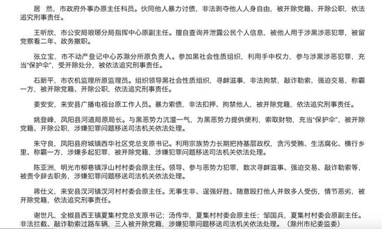 值得一提的是,在中央扫黑除恶督导组入驻期间,安徽各地也陆续发布了一批“保护伞”通报。