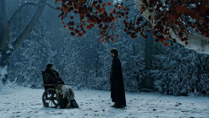 相比围绕在其他人周围一触即发的紧张空气,布兰心中已无波澜、脸上不见悲喜,即使与曾经推他下塔的仇人詹姆相见于心树下,接受后者的道歉时,也只是说:“如果你当时没有那么做,你还是会一成不变,我也依然是布兰登·史塔克。”