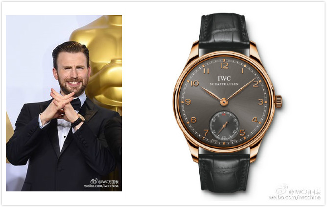 第88届奥斯卡颁奖典礼上,克里斯·埃文斯(Chris Evans)佩戴IWC万国表葡萄牙系列手动上链八日动力储备腕表盛装出席。图片来源/IWC万国表官微
