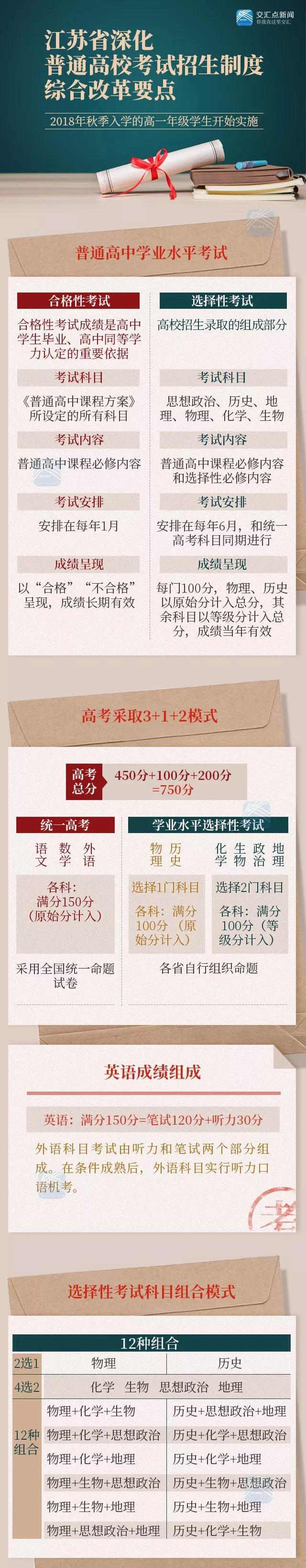 江苏高考方案:采用“3+1+2”模式 480分变成750分