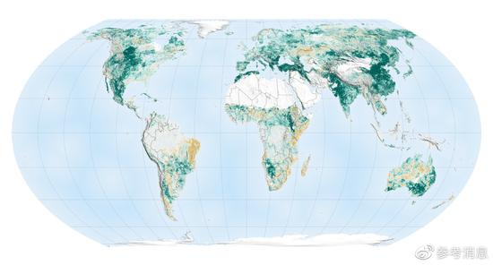中国又上了一次世界级“热搜”:美国航天局卫星数据表明,全球从2000年到2017年新增的绿化面积中,约四分之一来自中国,贡献比例居全球首位。