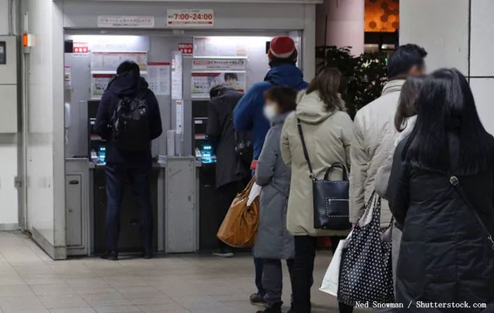 据日本时事通讯社,十连休还没开始,26日多地出现ATM机前排队取款的情况,致使短时间内取款金额大增,东京多部机器出现无钱可取的情况。
