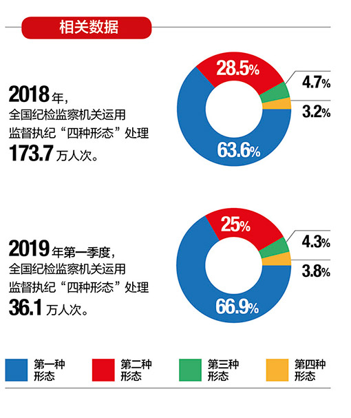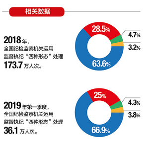 “全面、从严,体现在每名党员干部身上,就是任何情况下都不能触碰纪律红线”,辽宁省纪委监委案件审理室主任张丽君说,十八大前,他们受理的案件中多数都涉法,单纯违纪的仅占10%,只要不违法就没人管的问题比较普遍。十八大后,全省运用第一种形态和第二种形态处理人数逐年上升,2018年达到94.2%,涉及多是在以前可能不算问题的老问题,比如公款吃喝、公车私用、违规发放福利以及逢年过节违规收送礼品礼金等。