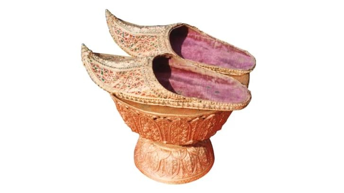 最后一件圣物为王履,鞋面上涂有金漆,镶有宝石,鞋底则是红色丝绒。在加冕仪式上,婆罗门祭司亲自为泰王穿上。