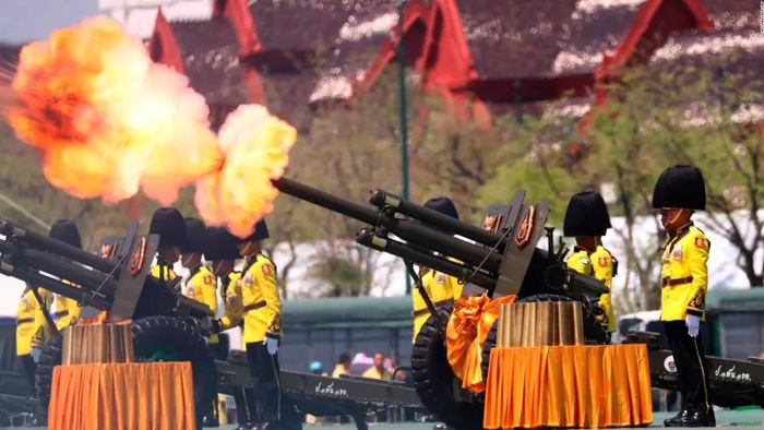 王室卫兵鸣放礼炮庆祝哇集拉隆功登基