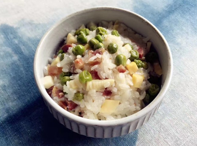 立夏前后,鲜蚕豆上市,正是食用的好时节。在浙江宁波,蚕豆被称为“倭豆”,并有“倭豆到立夏,一夜一个杈”的说法。立夏这天,宁波人的餐桌上,一碗倭豆饭是少不了的。制作时,将咸肉洗净切丁,加入倭豆煸炒,再跟糯米一起煮,熟后盛出,喷香扑鼻。