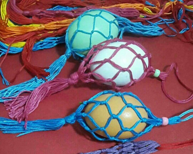 而在江浙地区,如盐城等,还有给小孩子胸前挂蛋网的习惯,彩色的绳子编一个小网,里面放入煮熟的鸡蛋。有谚语“立夏胸挂蛋,孩子不疰夏” 作为印证。“疰夏”指的是夏季常见的腹胀厌食、乏力消瘦,儿童比较容易发生。同时,孩子们还会用立夏蛋玩斗蛋游戏。将蛋分头尾两端,尖者为头,圆者为尾。斗蛋时,蛋头斗蛋头,蛋尾击蛋尾,逐个斗过去,蛋壳破碎的认输,最后分出名次。
