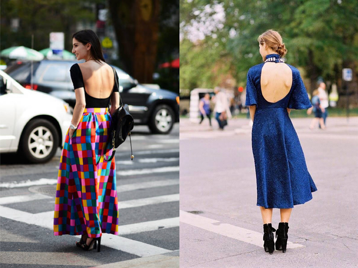 深V露背装可以从视觉上修饰身材,衬托出肩颈线条,还能让背部成为一个标准的“倒三角”。