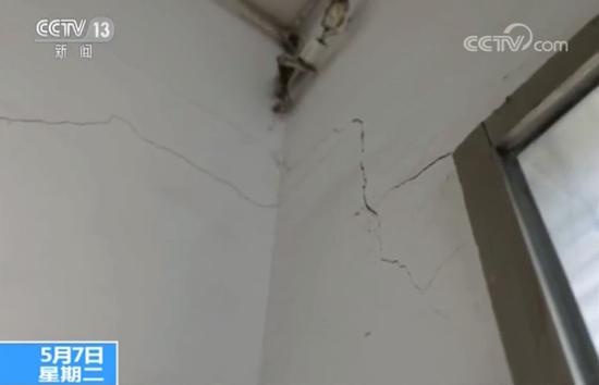 2010年修缮的新房子,如今大大小小的裂缝已经爬满了墙壁。裂缝还在逐渐变宽,家里的几扇门甚至也出现了变形。据记者统计,目前这个住着1870人的村子中, 有107间房屋出现了不同程度的开裂。