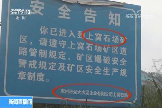 记者了解到,采石场叫做上窝石场,隶属惠州光大水泥有限公司。而这家水泥厂就在采石场旁边几百米的位置,从采石场开采出的石灰石直接被运往水泥厂做原料。